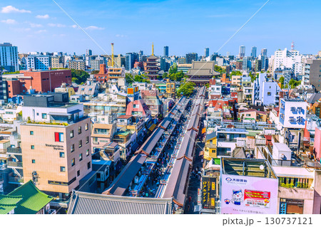 日本の東京都市景観インバウンド続く…外国人観光客らで賑わう伝法院通りなどを望む=10月10日