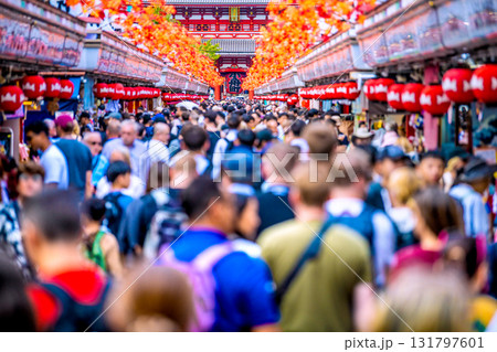 日本の東京都市景観インバウンド続く…まるで異国…外国人観光客らで大混雑の浅草寺