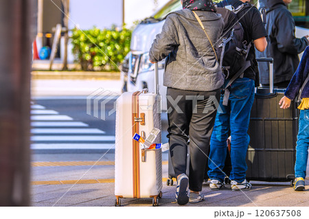 日本の東京都市景観 年の瀬。インバウンド続く…浅草駅前、吾妻橋交差点にもスーツケースの観光客が続々…