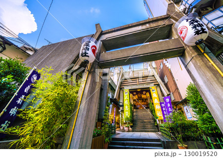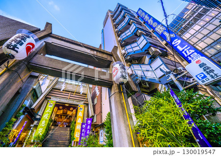 日本の東京都市景観 新橋・烏森神社やカラオケの鉄人SL広場前店などを望む