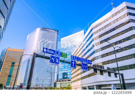 日本の東京都市景観 年の瀬。反射する太陽光…汐留のオフィスビル群などを望む。輝く希望の時代へ=26日