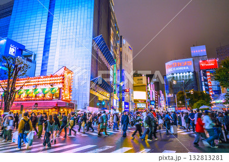 日本の東京都市景観 歌舞伎町の交差点、ドン.キホーテなどを望む。新時代に…=26日