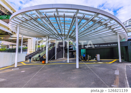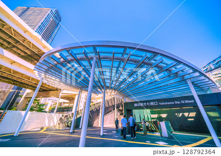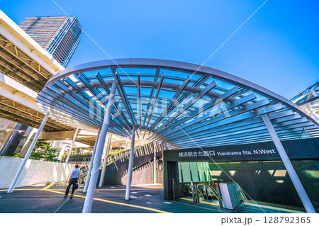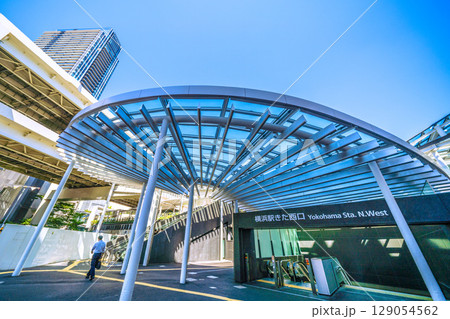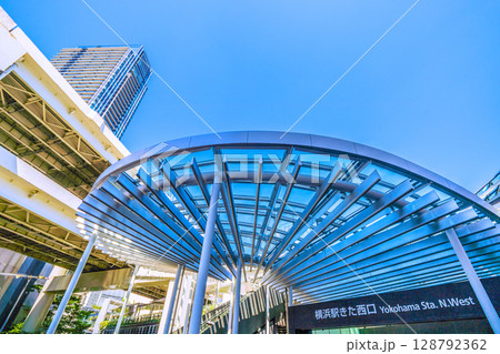 日本の横浜都市景観 6月。整備された横浜駅きた西口。大屋根が印象的…