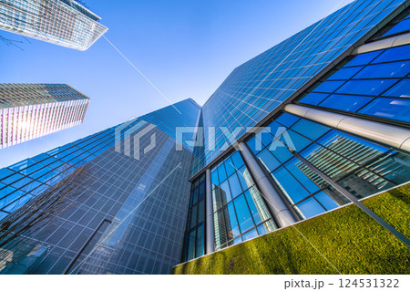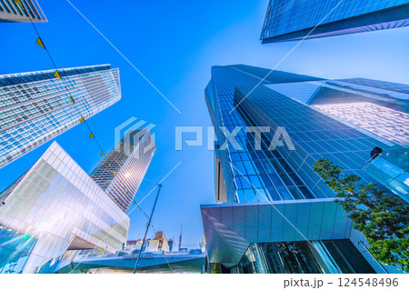 日本の東京都市景観 希望の光…虎ノ門ヒルズステーションタワー(虎ノ門ヒルズ駅)などを望む
