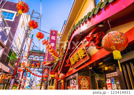 日本の横浜都市景観 横浜中華街・市場通り。いつもと変わらない赤提灯などが出迎えてくれる。希望の光…