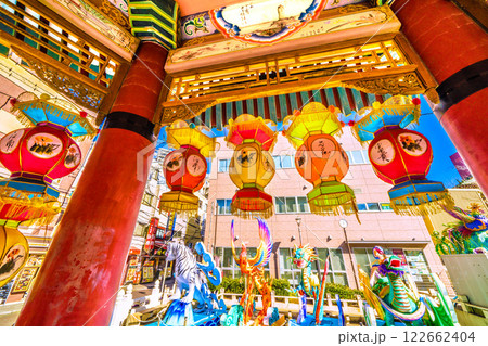 日本の横浜都市景観 横浜中華街・善隣門などを望む(奥は中華街大通り)…新時代へ=令和7年1月22日