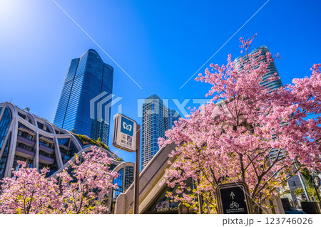 日本の東京都市景観 桜開花…新時代へ…(外国人観光客らで賑わう)麻布台ヒルズなどを望む=3月7日