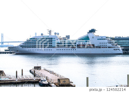 日本の横浜都市景観 初入港。新港ふ頭客船ターミナルのシーボーン・クエストなどを望む=30日