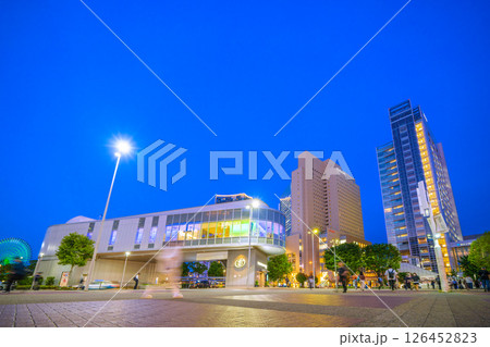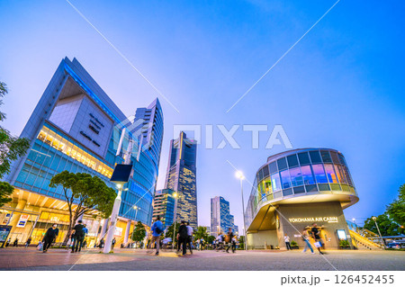 日本の東京都市景観 桜木町駅前。横浜市役所やヨコハマエアキャビンなどを望む