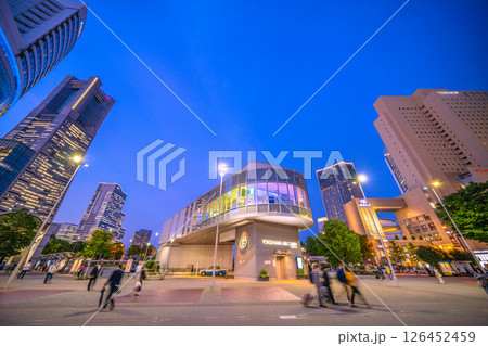 日本の横浜都市景観 6月1日。相鉄横浜駅や横浜市営地下鉄ブルーライン横浜駅、太陽光などを望む