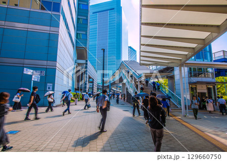 日本の横浜都市景観 朝の通勤風景。奥は、横浜市役所方向