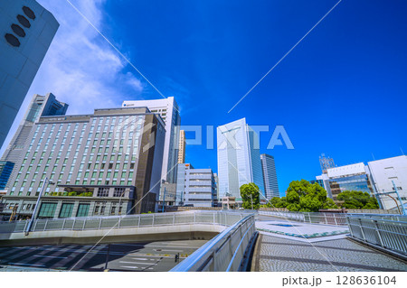 日本の横浜都市景観8月30日。桜木町駅前の横浜桜木町ワシントンホテルや横浜市役所などを望む