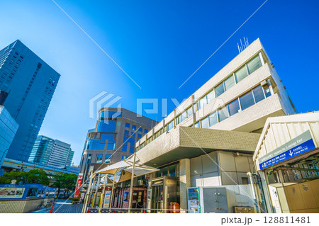 日本の横浜都市景観 朝…SOTETSU 横浜駅や横浜市営地下鉄ブルーライン横浜駅出入口などを望む