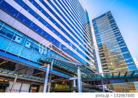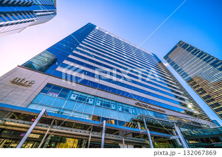 日本の東京都市景観 品川駅前のオフィスビル群などを望む