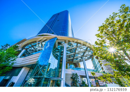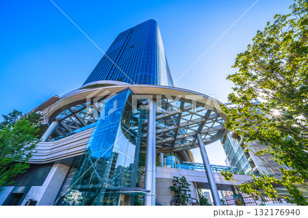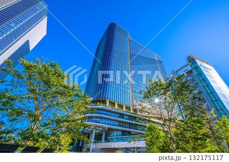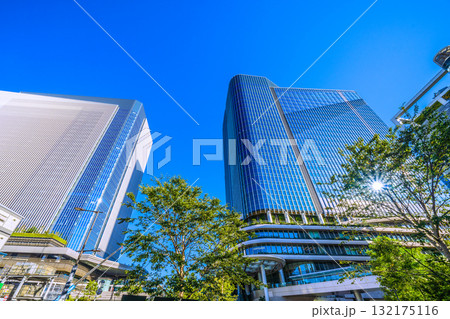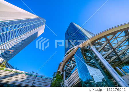 日本の東京都市景観 品川駅前のオフィスビル群などを望む