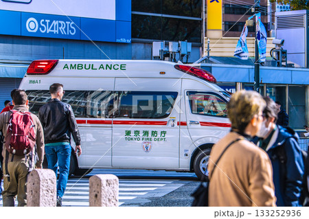 日本の東京都市景観減速した救急車…マイクで必至に…呼びかけるが、無視して交差点には日本人がゾロゾロ