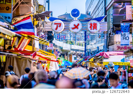日本の東京都市景観10月。インバウンド続く…脅威の人出…外国人観光客らで賑わう上野駅前・アメ横など