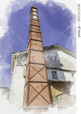 水彩画風 教善寺 鐘楼 広島県東広島市