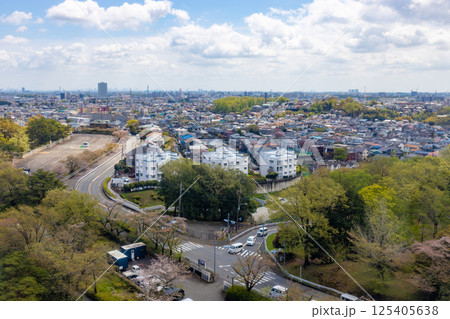 埼玉県所沢市の西武園ゆうえんちの展望塔から見た東京都東村山市多磨町の風景