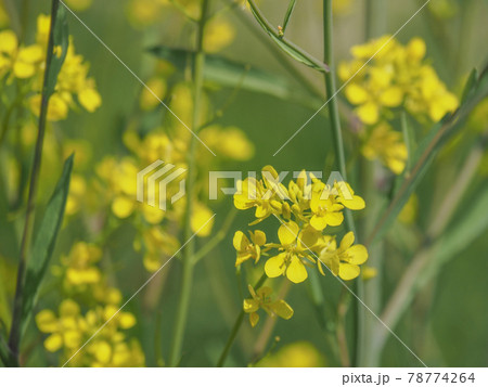 自然 植物 セイヨウカラシナ、大きな群落を作り春に黄色い花を一面に咲かせます。『菜の花』のひとつ