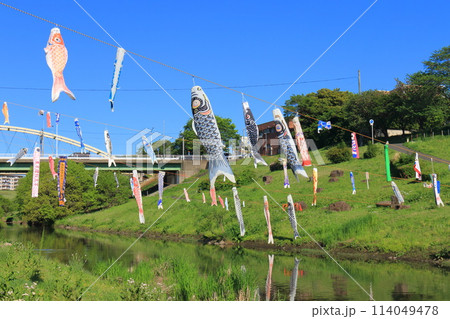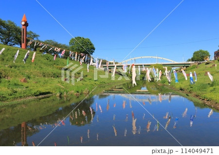鯉のぼりが泳ぐ利根運河 運河水辺公園 千葉県流山市