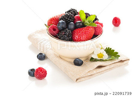 Mix berries with leaf on white background