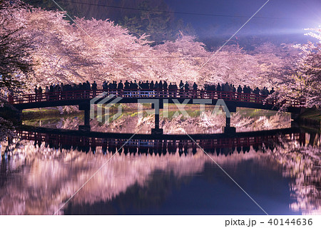 弘前公園 春陽橋から夜桜を楽しむ人々 青森県弘前市