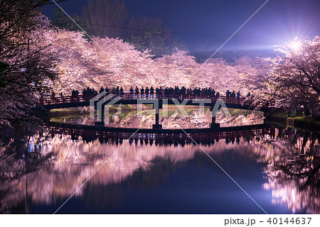 弘前公園夜景 春陽橋 夜桜リフレクション 青森県弘前市弘前公園