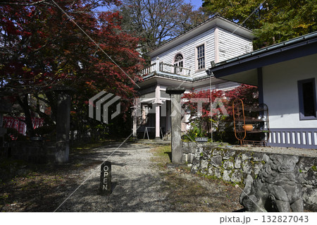福島県白河市南湖公園内にある明治記念館と紅葉