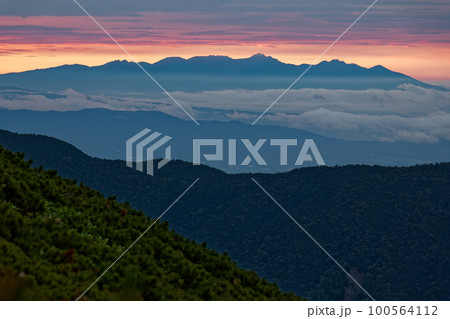 北アルプス・西穂高岳稜線から見る夜明けの八ヶ岳