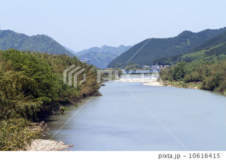 川の流れ。夏(7月)の加古川(兵庫県西脇市内)。