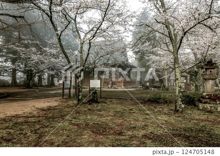 味わい深い朝靄に煙る西連寺境内の桜【茨城県行方市】