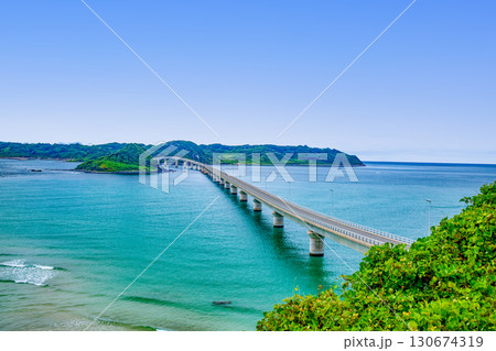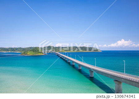 海土ヶ瀬戸をまたぐ角島大橋の空撮