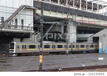 大宮総合車両センターにて改造中の中央線E233系電車(埼玉県さいたま市大宮区)