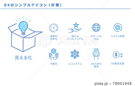 DX、デジタルトランスフォーメーションのシンプルなアイコンセット(対策)