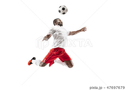 Professional football, soccer player in motion isolated on white studio background. Concept of sport, match, active lifestyle, goal and hobby