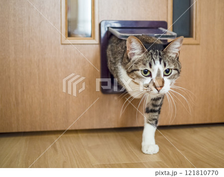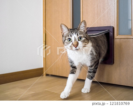 カーテンの隙間から顔を出す可愛い猫 茶トラ白