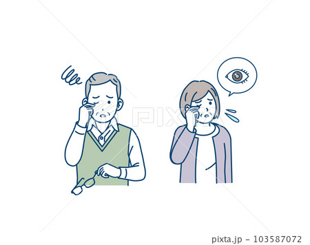 老眼や視力が低下して困る高齢者、老夫婦のイラスト
