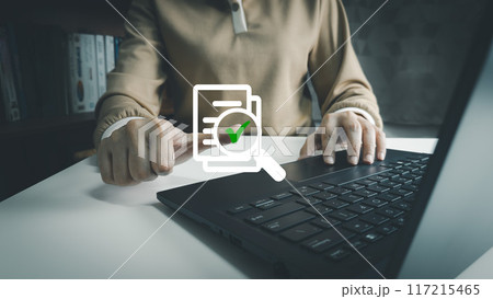 Quality assurance by businesswoman showing the symbol of top service, excellent warranty, world standard, ISO certification, development and improve the quality of the organization concept