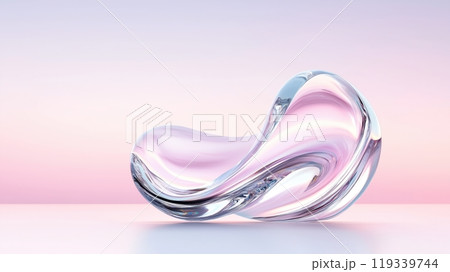 A beautifully crafted glass sculpture displaying smooth, flowing curves with a soft pastel gradient background, creating a serene and artistic ambiance.