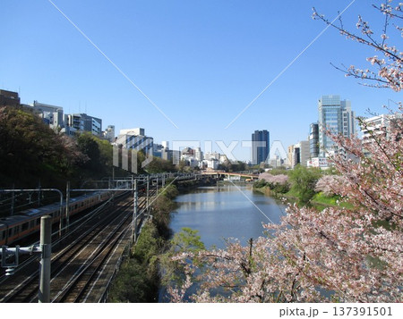 東京紀尾井町・弁慶橋と紀尾井町通リの八重桜並木