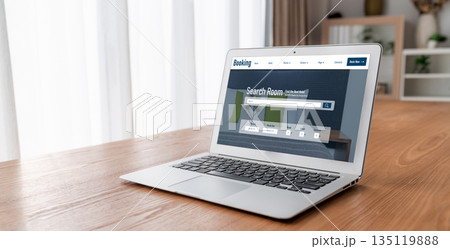 Happy couple booking vacation online with laptop and credit card at cozy home