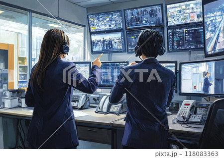 警備室_防犯カメラの映像を監視する警備員_3