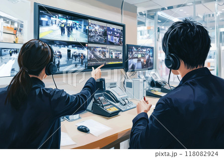 警備室_防犯カメラの映像を監視する警備員_2