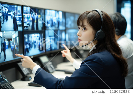 監視カメラの映像をチェックする警備員