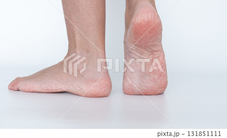 Close-up view of human feet showing corns and calluses, highlighting skin texture and foot health concerns in a clinical setting