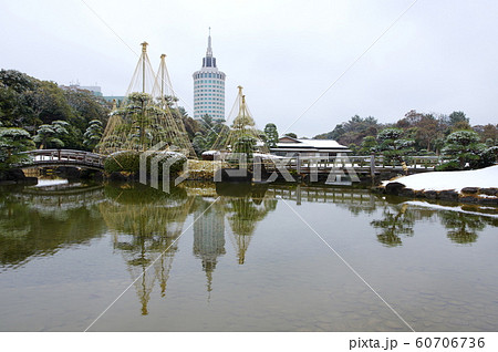 日本庭園/見浜園の池と雪吊り(千葉市美浜区)
