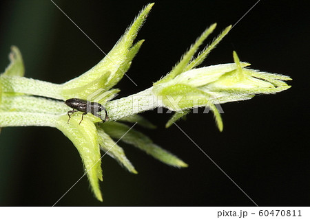 生き物 昆虫 カナムグラヒメゾウムシ、カナムグラの蔓先。よく見ると蔓のあちこちにいます