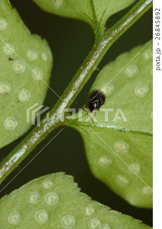 生き物 昆虫 ズアカシダカスミカメ、三ミリ弱。羊歯に付くカスミカメムシ。ヤブソテツの葉裏にいました