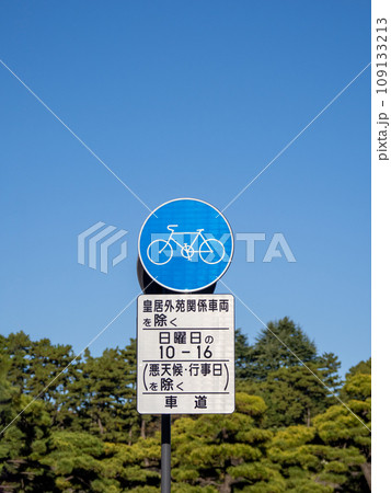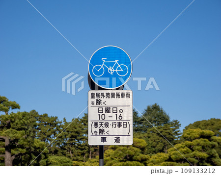 皇居外苑 パレスサイクリングコース上に設置された規制標識と補助標識